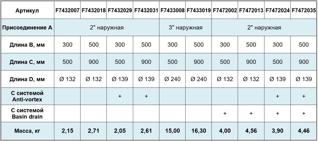 Регулируемые переливы поддерживают максимальный уровень воды внутри водоема или фонтана, устанавливая уровень воды до необходимой отметки. Эта отметка колеблется между 30 и 50 см или 50 и 90 см. Донный слив с присоединением 2 дюйма устанавливается, чтобы демонтировать перелив, если нужно слить воду.